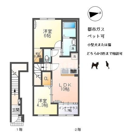都市ガス インターネット無料 ペット飼育可能(小型犬または猫)どちらか2匹まで相談可